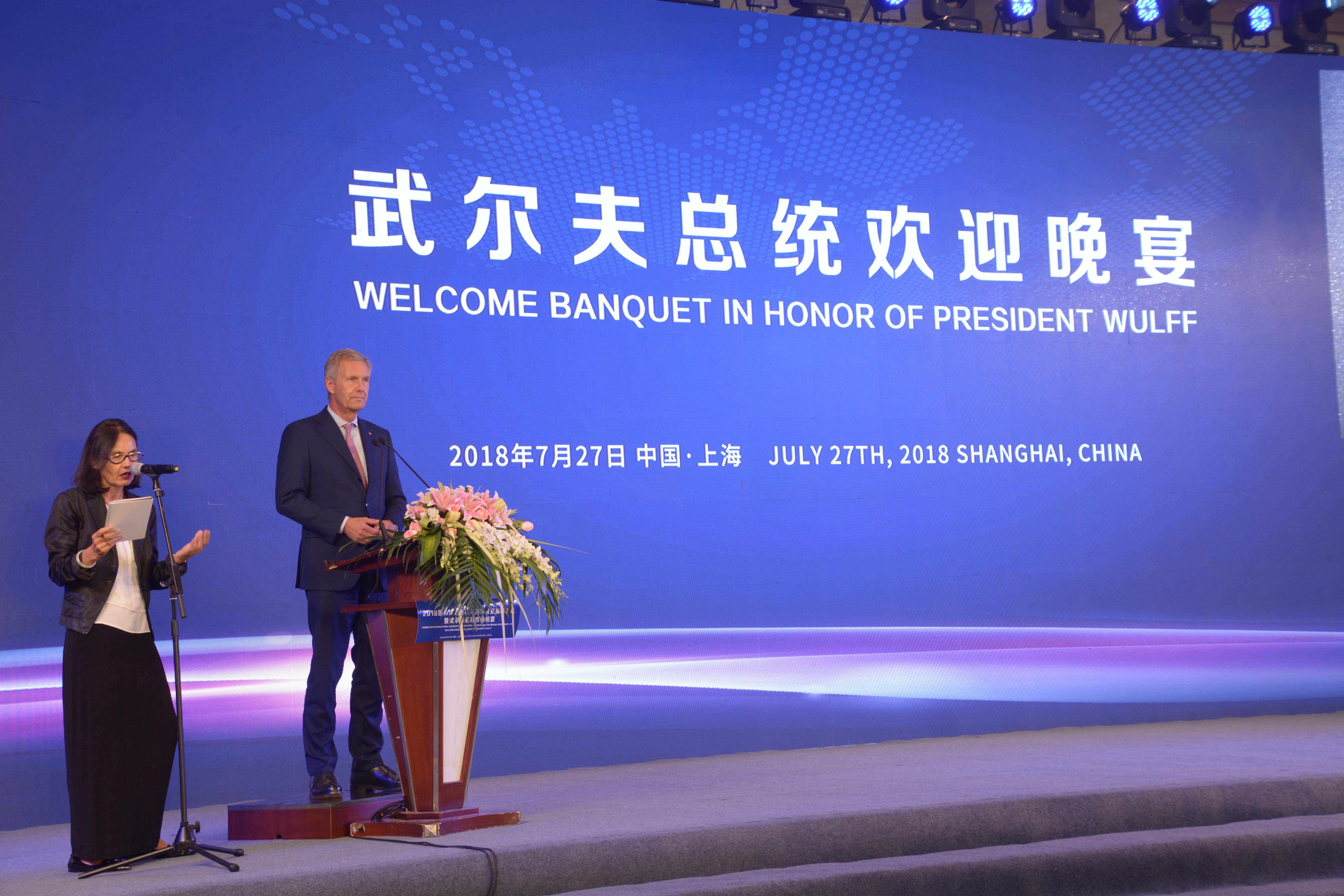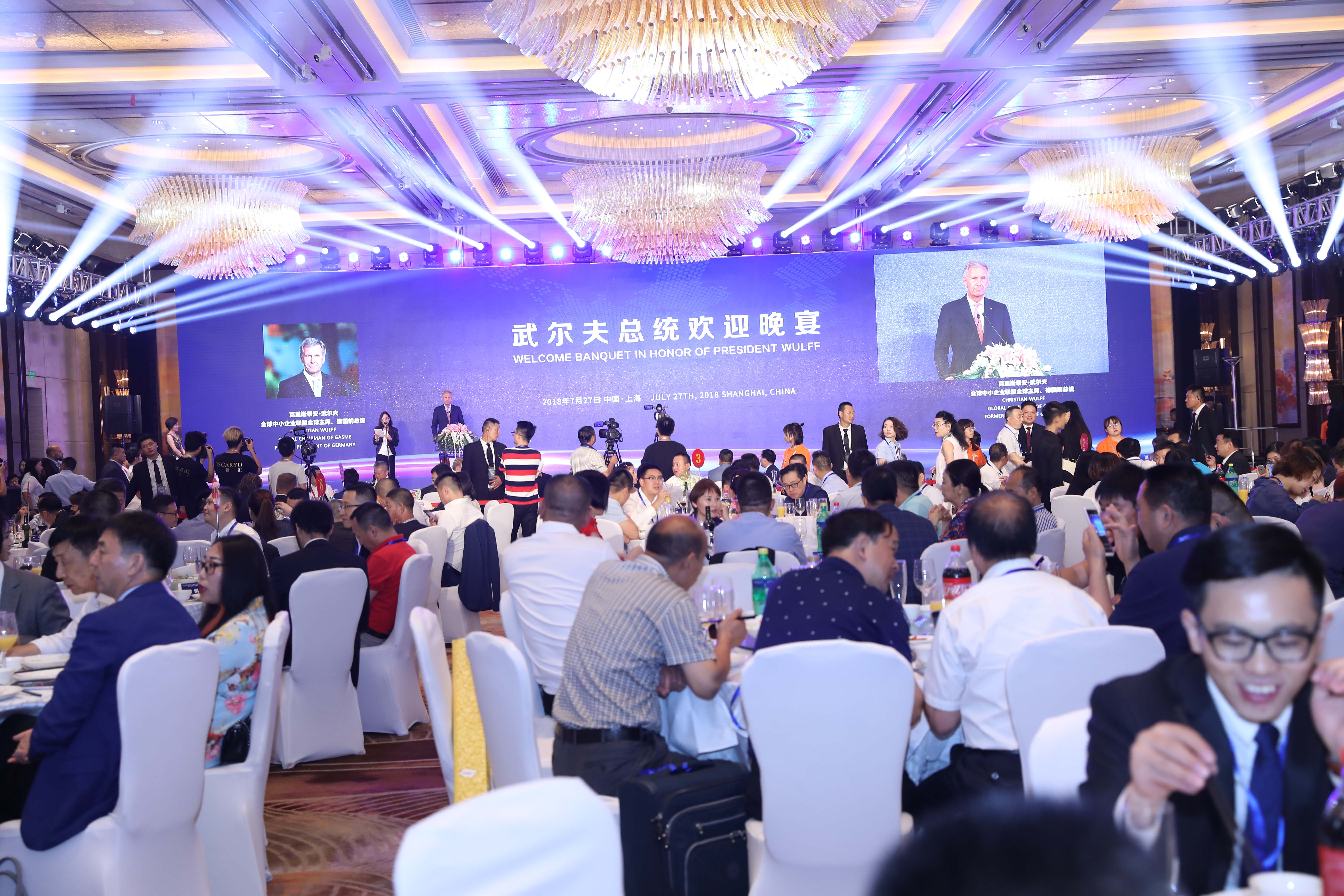 2018国际商会合作与品牌发展高峰论坛暨武尔夫总统欢迎晚宴”在上海浦东嘉里大酒店隆重召开。本次论坛邀请到全球中小企业联盟全球主席、德国前总统克里斯蒂安·武尔夫、外交部原副部长于引等重要领导在活动中发表了重要致辞,300余位各界精英企业家出席了活动。